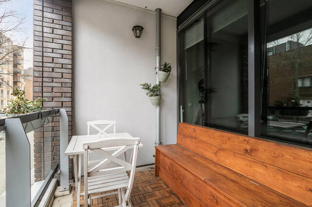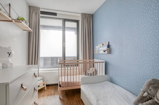 Directly connected to the living room is a south-facing balcony of approximately 6 m². A pleasant outdoor space where you can enjoy the sun during the day. Whether starting your morning with a coffee or relaxing outside in the evening, the balcony acts as a natural extension of the living area and enhances the sense of light and openness inside the apartment.