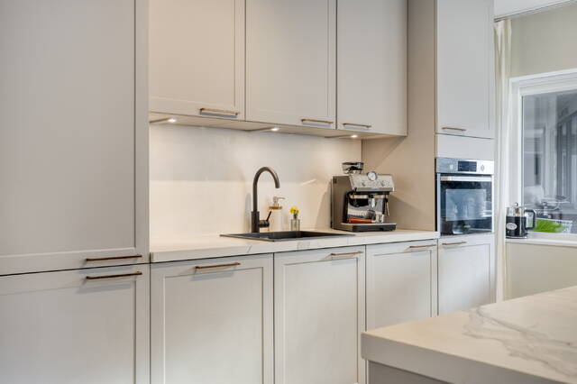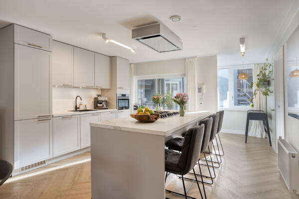 Mechanical ventilation, solid insulation, and recently renovated window frames and glazing contribute to the home’s energy label B, ensuring year-round comfort, efficiency, and peace and quiet throughout the year.