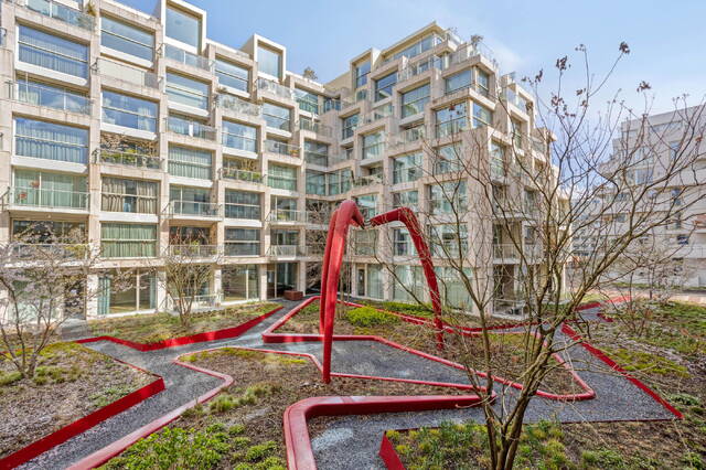 The Grid werd in 2021 opgeleverd en bestaat uit 68 luxe appartementen met een opvallende, getrapte gevel. De royale lobby met extra hoge plafonds geeft je meteen dat gevoel van thuiskomen in iets bijzonders.