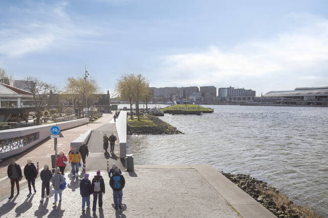 Overhoeks is the kind of neighbourhood you only truly understand once you live there. Car-free, green, with water glittering on all sides, and yet just a short hop from Amsterdam Central Station. The ferry runs day and night, free of charge, and within ten minutes you step from your front door into the city centre. Within walking distance you will find an Albert Heijn supermarket, the organic grocery store Odin, a gym, a primary school and a daycare centre.