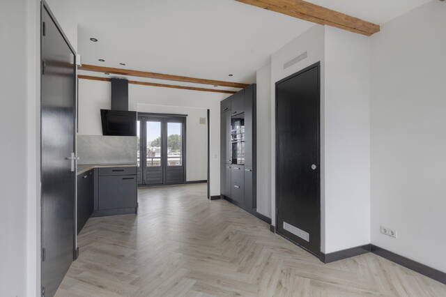 Bij binnenkomst valt meteen op hoe slim de ruimte van 33,1 m2 is benut. De studio is in 2021 volledig gerenoveerd, en dat zie je aan alles. Frisse afwerking, moderne materialen en een indeling die aanvoelt als twee keer zo groot. De open leefkeuken loopt naadloos over in de woonkamer, en dankzij de openslaande deuren aan de westzijde stroomt het daglicht de hele dag naar binnen. De keuken zelf is een lust voor het oog en voor de kookliefhebber: inductiekoken, een oven, een magnetron, een koelvriescombinatie en een royale apothekerskast voor al je voorraad. Hier kook je met plezier.