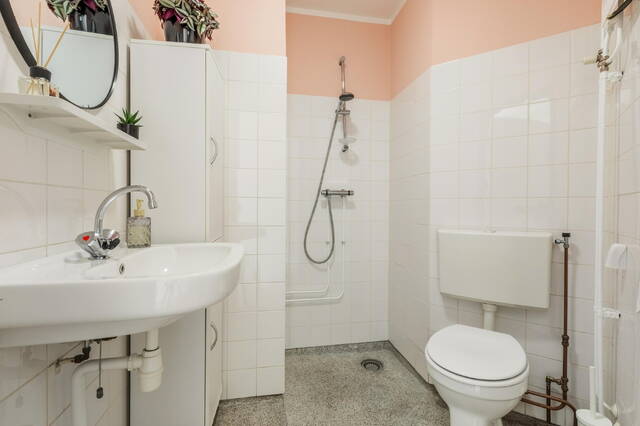 At the rear of the apartment you will find the bedroom and the kitchen. The kitchen is practically laid out and provides access to the rear balcony and the sunny south-facing garden. This is a major advantage in this neighbourhood, offering privacy and plenty of sunshine. In addition, the apartment has a separate storage unit in the basement of the building, accessible via the communal entrance.