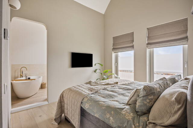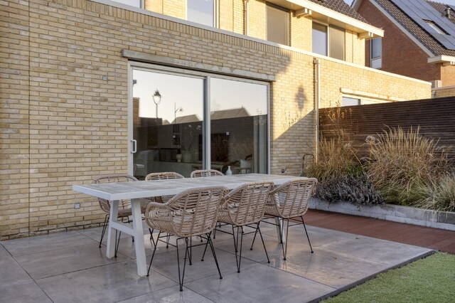 De woning beschikt over twee stijlvolle badkamers, zes slaapkamers en een enorme hoeveelheid licht door de grote ramen rondom. De tuin op het zuiden maakt het plaatje compleet: de hele dag zon, privacy en een heerlijk uitzicht op de avondlucht met zonsondergangen die je keer op keer verrassen.
