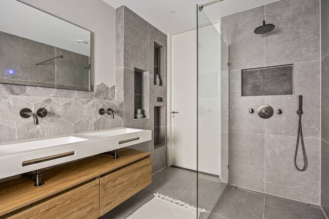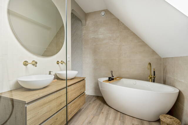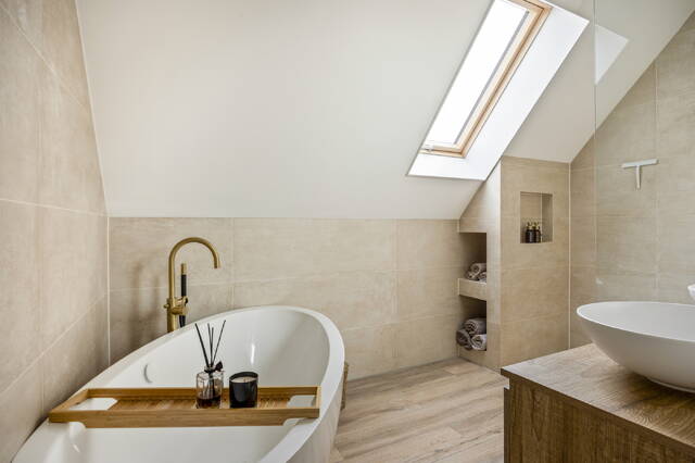 De zes slaapkamers bieden eindeloze flexibiliteit: van kinderkamers tot gastenverblijven, van een thuisgym tot kantoor alles is mogelijk. En dan zijn er nog de twee moderne badkamers, afgewerkt in rustige tinten en voorzien van inloopdouche en/of ligbad. Elk detail is stijlvol, zonder overdreven te zijn; precies de balans die luxe herkenbaar maakt.