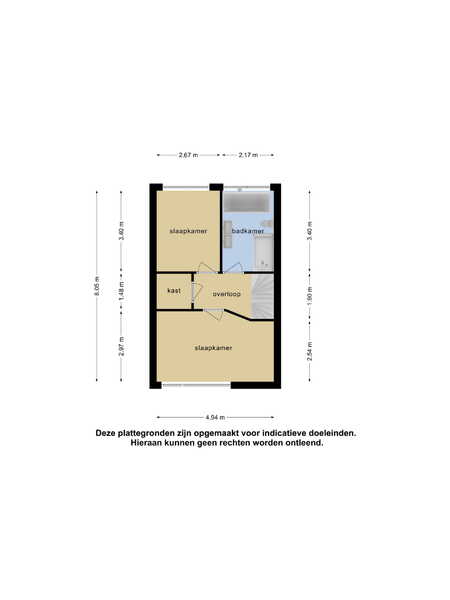 De master bedroom biedt genoeg ruimte voor een tweepersoonsbed en een grote kast. De andere slaapkamer op deze verdieping is ideaal als kinderkamer, inloopkast of thuiskantoor. Maar, aan opbergruimte genoeg in deze woning want op de overloop bevindt zich ook nog een grote vaste kast!