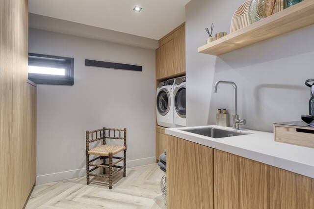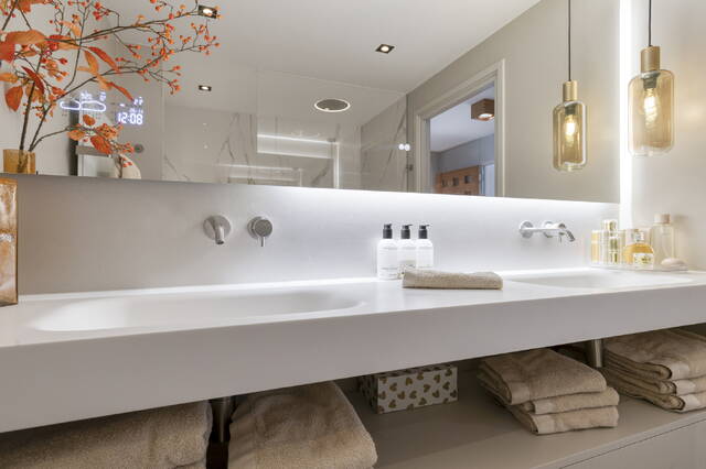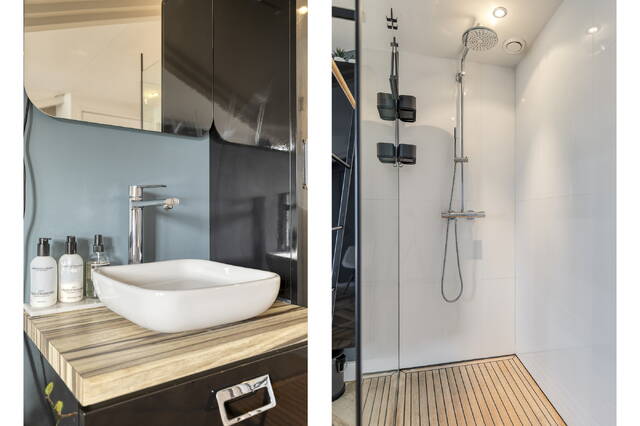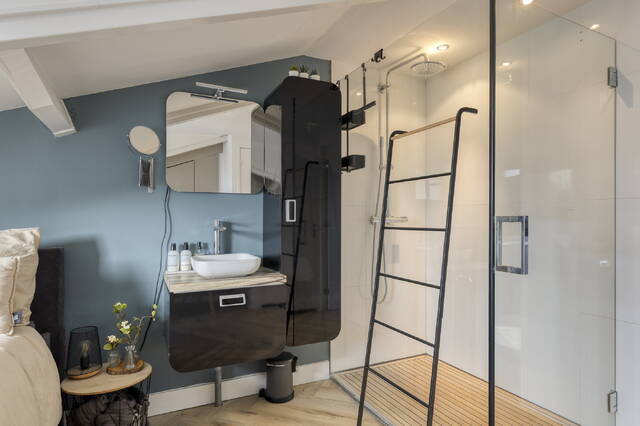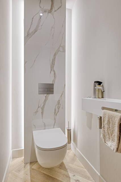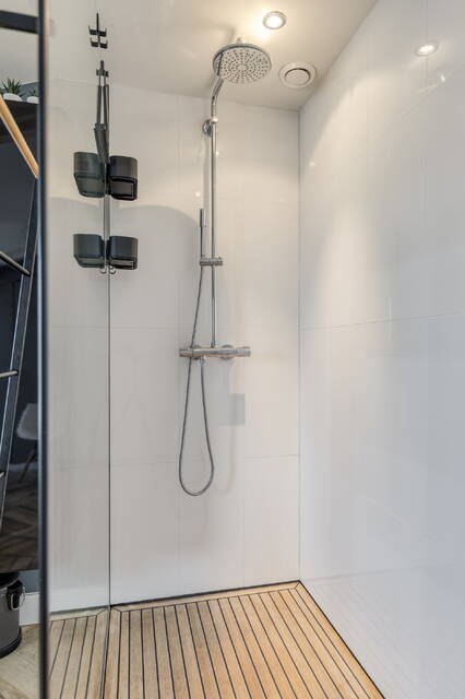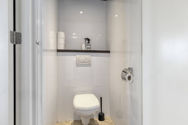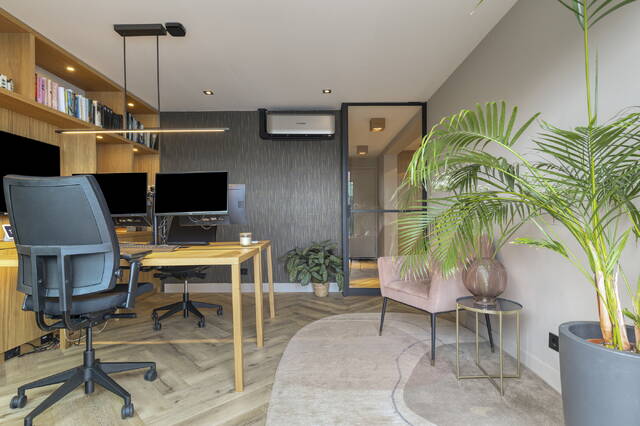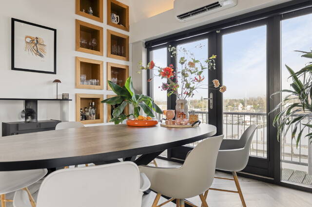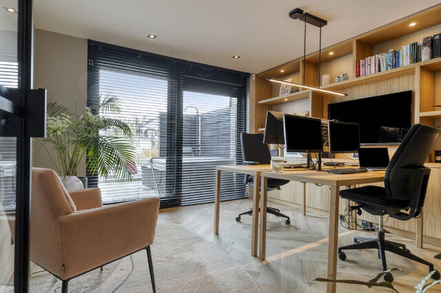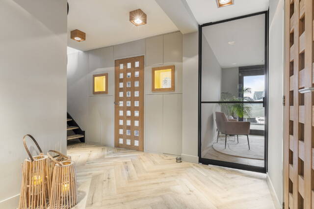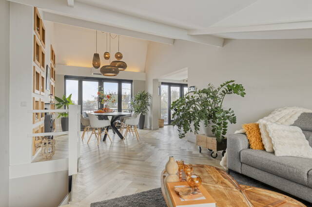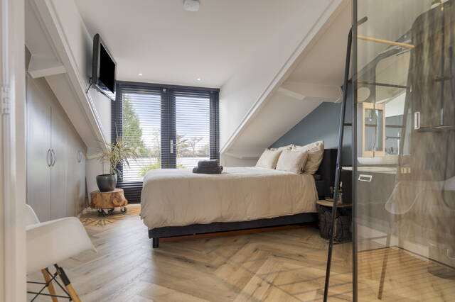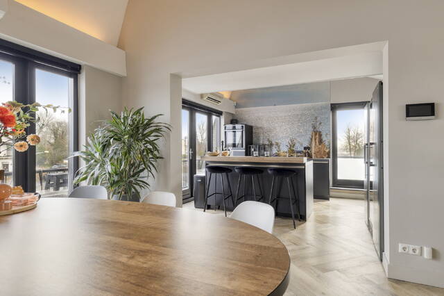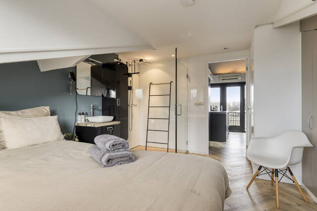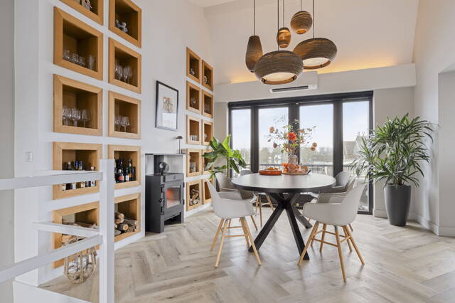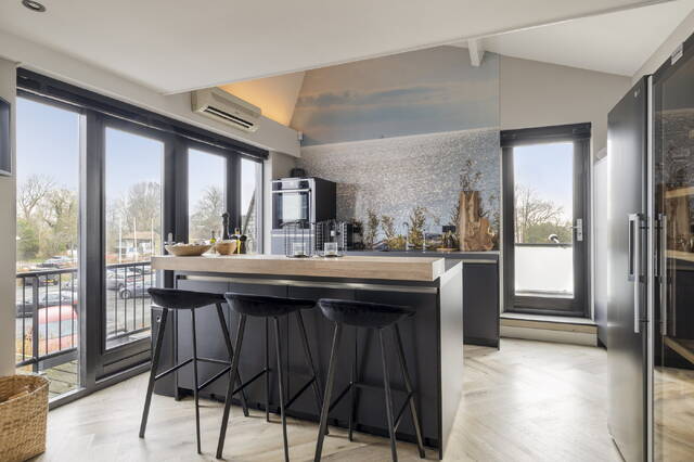 The playful layout offers complete flexibility: several rooms can easily be reconfigured, such as creating an additional bedroom or an additional office. A bedroom and office have been created on the ground floor, but these can also be used as two spacious bedrooms. From the spacious hallway, you have access to the perfectly finished laundry room, a separate toilet, and the luxurious bathroom with a walk-in shower and vanity. The living/dining room is located on the first floor, overlooking the Vinkeveense Plassen lakes. Adjacent is the luxurious open-plan kitchen, equipped with various built-in appliances. The bedroom on this floor has its own walk-in shower and toilet.