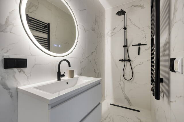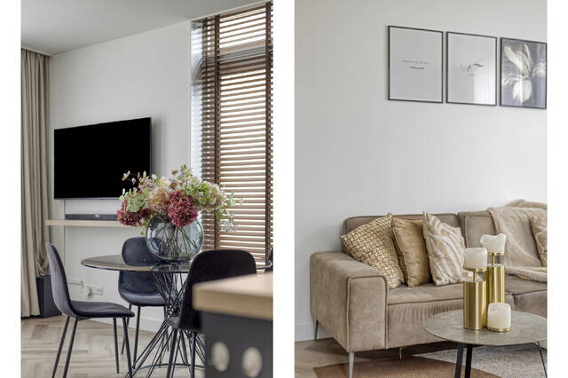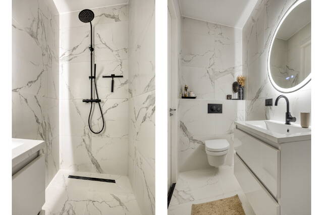 With 42 m² of living space and one bedroom, this apartment is ideal for a single or a couple. The modern kitchen is sleekly designed and equipped with all necessary appliances – perfect for those who love both convenience and style. The bathroom is equally modern, featuring a walk-in shower, practical layout and calming finish.