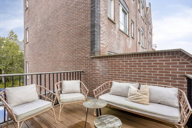De woonkamer is slim ingericht en voelt verrassend ruim aan. Grote ramen en openslaande deuren naar het dakterras zorgen voor veel licht en een luchtige sfeer. Het terras zelf is royaal en biedt een heerlijke plek voor een ontbijt in de zon, een zomerse borrel met vrienden of een ontspannen avond onder de sterren. Door de directe toegang vanuit de woonkamer wordt buiten écht een verlengstuk van je leefruimte.
